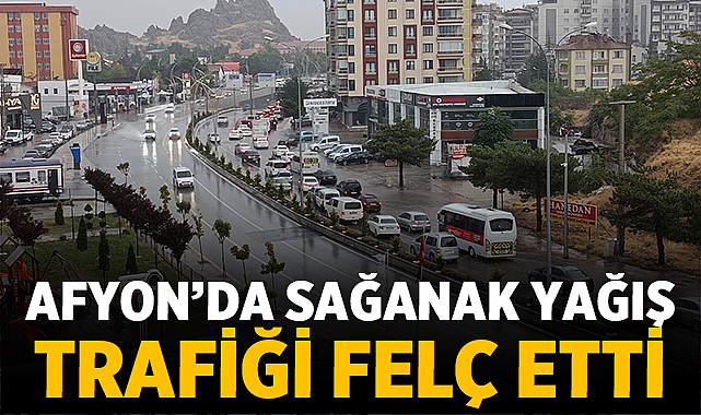 Afyonkarahisar’da hafta boyunca etkili olan sıcak hava, akşam saatlerinde yerini aniden bastıran sağanak yağmura bıraktı. Şiddetli yağış, kısa sürede kent merkezinde ulaşımı olumsuz etkileyerek trafik akışını durma noktasına getirdi.