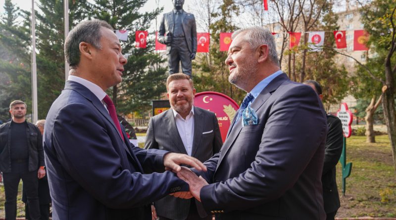 Saygı duruşu ve iki ülke milli marşların okunmasıyla başlayan törende, park içerisinde bulunan Cengiz Aytmatov Anıtı’na çelenk bırakılarak büyük yazarın hatırası yaşatıldı.