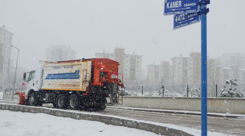 Etimesgut’ta yoğun kar yağışı karşısında ekipler sahada