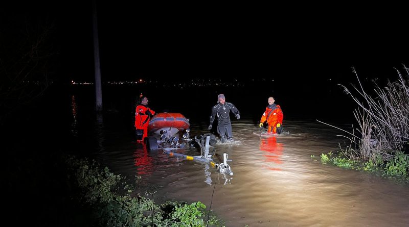 Olay yerine ulaşan itfaiye personeli, yaklaşık 1 metreyi bulan sel sularının ortasında kalan canlıları kurtarmak için dalgıç ekiplerle birlikte bir operasyon başlattı.
