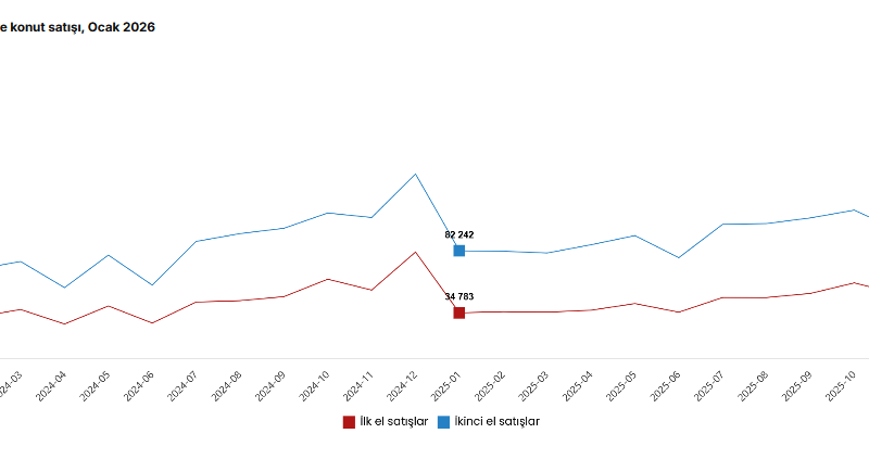 Türkiye İstatistik Kurumu (TÜİK) verilerine göre, Türkiye genelinde ilk el konut satış sayısı Ocak'ta yıllık bazda yüzde 2,1 azalarak 34 bin 69'a düştü. İkinci el konut satışları ise Ocak'ta yıllık bazda yüzde 5,9 azalarak 77 bin 411'e düştü. Toplam konut satışları içinde ilk el konut satışlarının payı yüzde 30,6, ikinci el konut satışlarının payı yüzde 69,4 oldu.